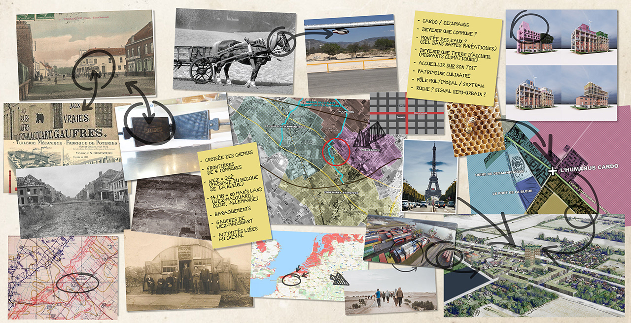 Avant que le village de Wez Macquart ne devienne une commune nouvelle en 2036, trois communes se partageaient jadis le territoire du hameau : La Chapelle d’Armentières au nord-ouest, Prémesques à l’Est et Ennetières en Weppes au Sud-ouest. Lorsque la MEL s’arrêta sur le choix du skytran pour la liaison rapide de Lille à Armentières, les trois communes établirent un compromis équitable insistant sur le fait que ce nouveau pôle devait impérativement se trouver au point de rencontre des territoires des trois communes. Ainsi se dressa l’Humanis Cardo, à l’aplomb d’un carrefour et à cheval sur trois communes. Mais la gestion chaotique de ce lieu dès ses débuts, due principalement à des rivalités intercommunales, conduisit à l’érection en commune du hameau de Wez Macquart. L’Humanis Cardo, qui ne devait être qu’une gare et des bureaux relais, devient alors à la fois pôle multimodal, gare de marchandises, mairie, espace de co-working, et même lieu de production puisque les célèbres gaufres de Wez-Macquart sont produites au 8ème étage de cette tour des miracles.